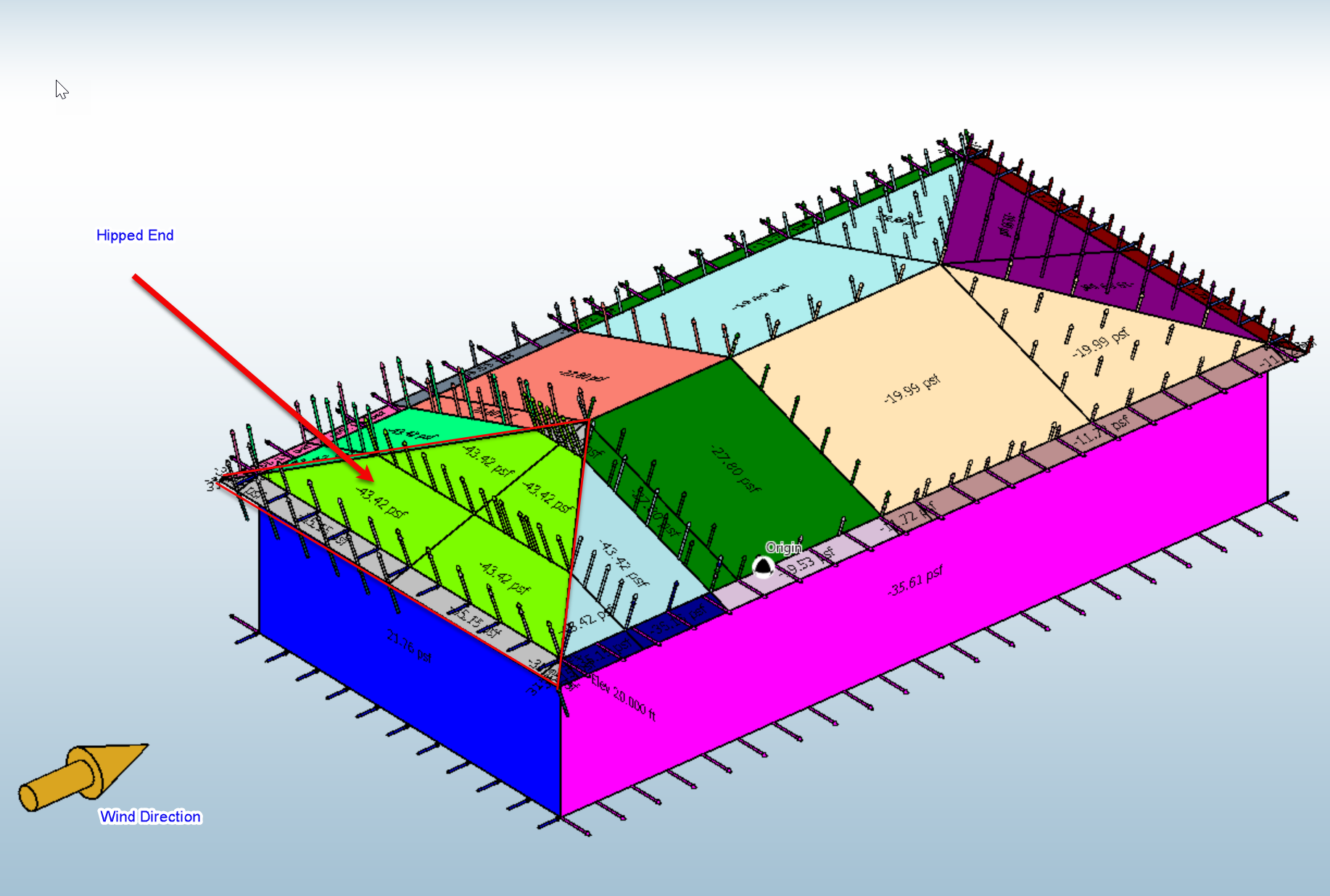 There has been a debate about how to handle the case of wind parallel to the ridge, for a Hipped End of a hipped roof. See graphic below to illustrate.