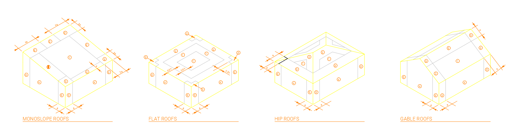 One of our clients was kind enough to share with us an AutoCAD drawing that is a representation of various roof types and the corresponding zones. This is from from comprehensive, but it is just offered here as a free resource if you find it useful.