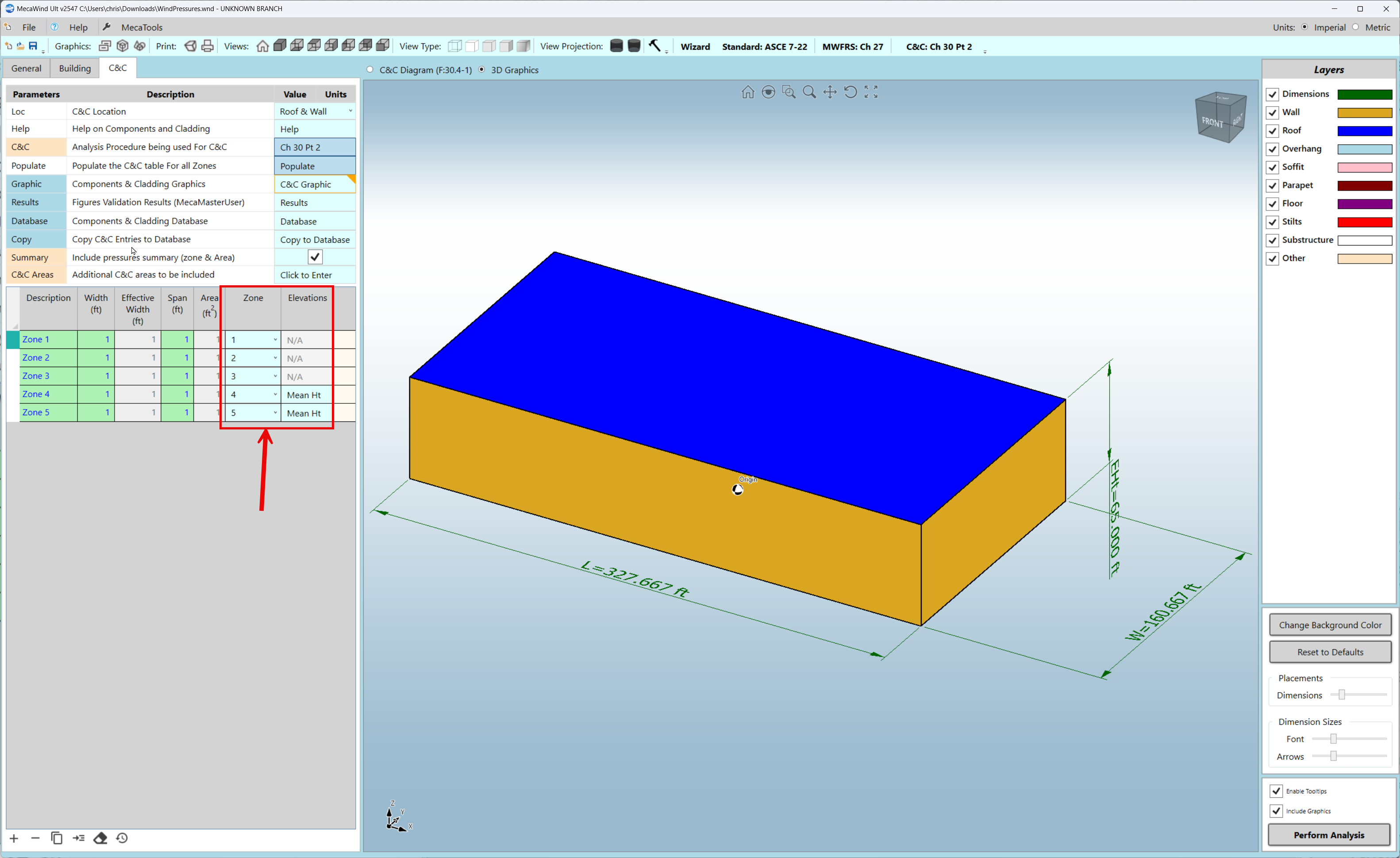 When using ASCE 7-22, the Ch 30 Pt2 and 2a [ASCE 7-16 Ch 30 Pt 3 and 3a] are the only C&C calculation methods that do allow the user to specify an elevation for each entry. As a reminder, these are the requirements to use Ch 30 Part 2: