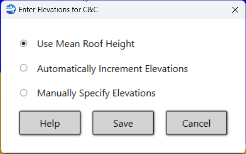 This is the most conservative option, where it just uses the Mean Roof Height regardless of the elevation for the C&C entry.
