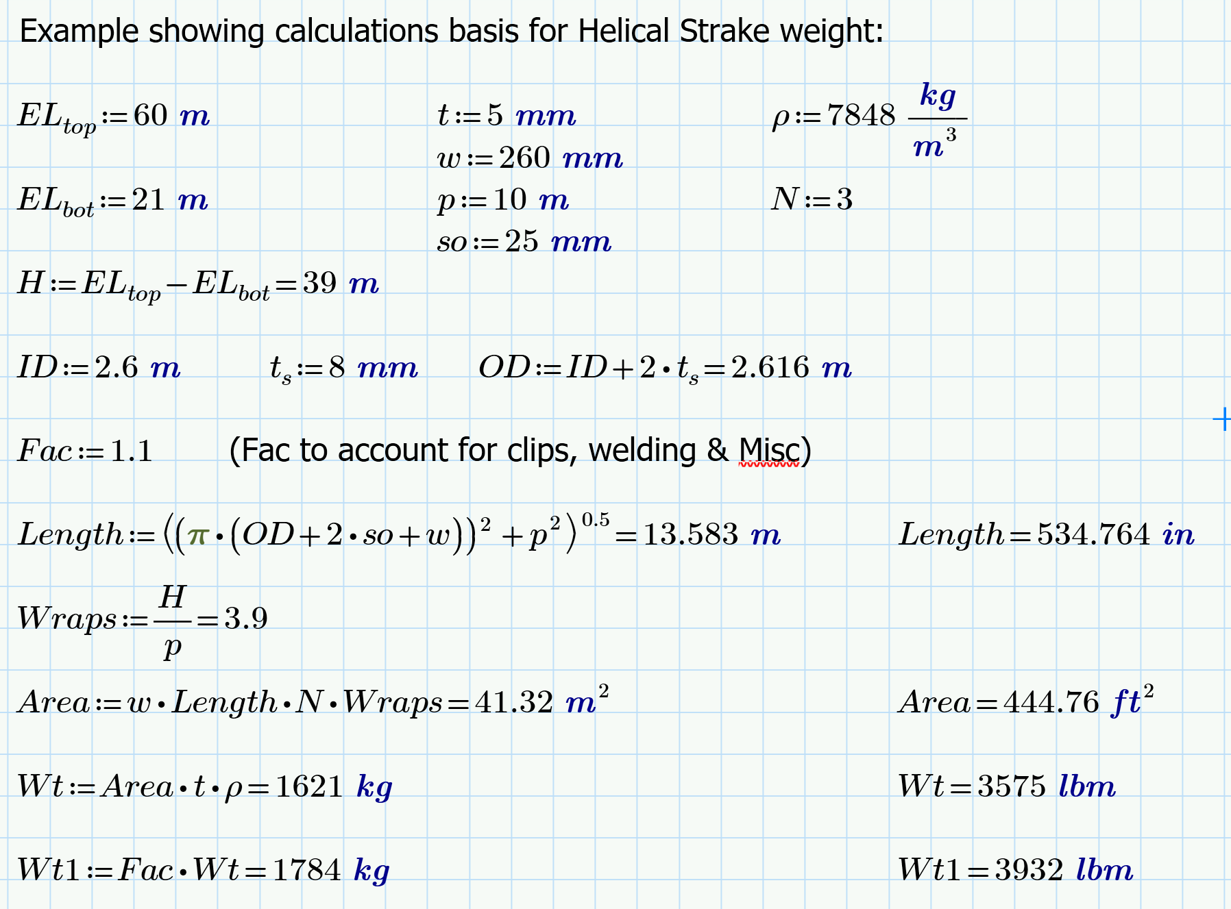 Helical Strake Weight Calculation Print